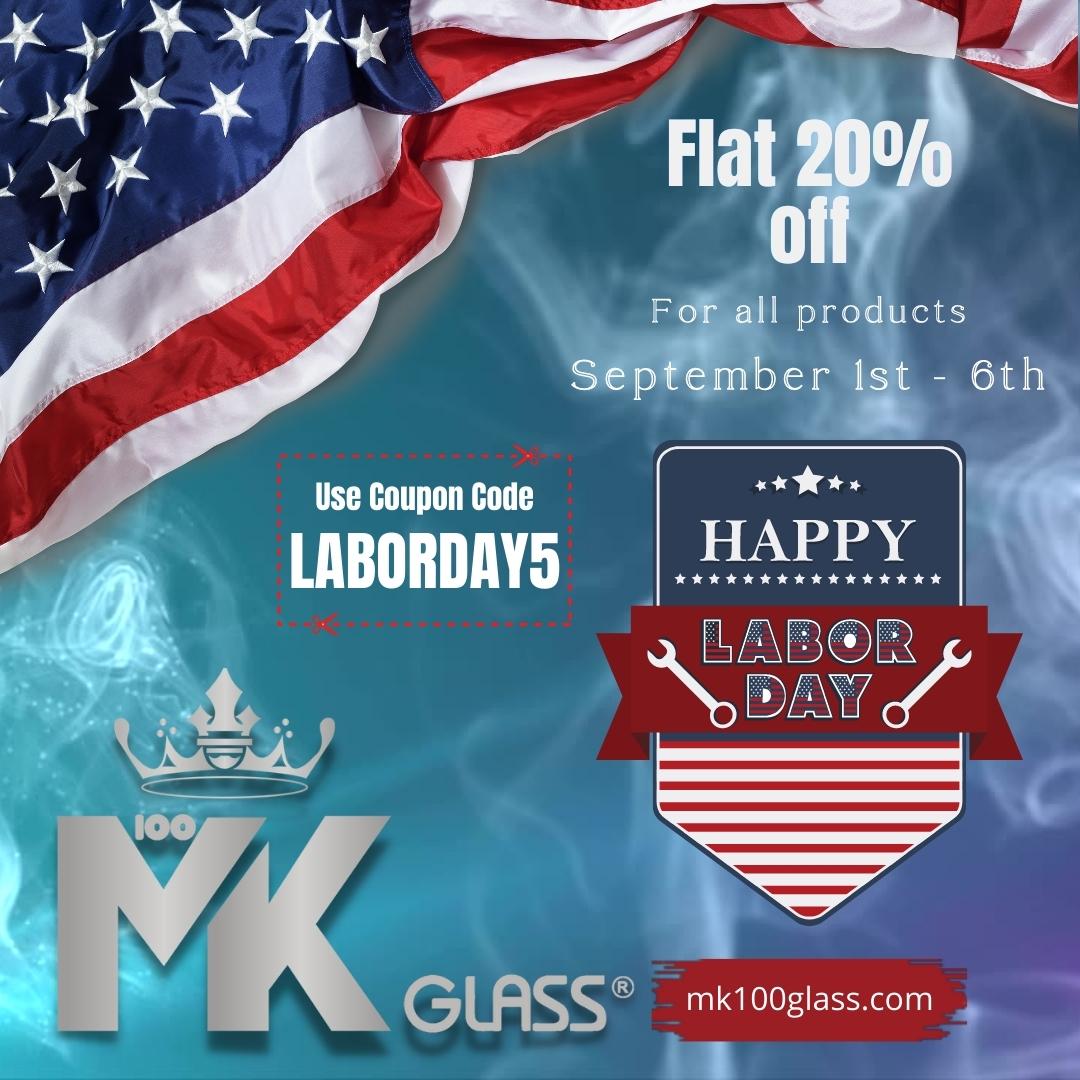 Celebrate labor day with Mk100 Glass! We are excited to announce a flat 20% off till 6th September all over the website. Use coupon code LABORDAY5 and save 20% on your cart’s total amount.
