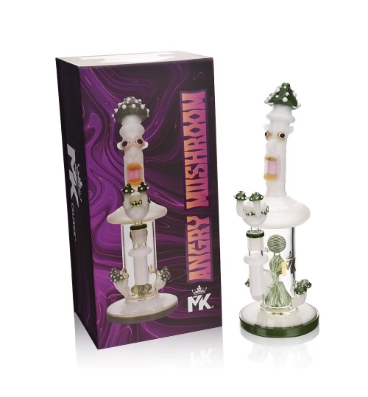 Can't get enough mushrooms in your smoking collection?! Well MK100 Glass introduces another piece that will leave you amazed. Their new Angry Mushroom Water Pipe is absolutely stunning. With an amazing wigwag design made with rich US colors this piece will be an eye catcher. Apart from the stunning piece the bowl will also amaze you with the amount of detail it has. The piece will also provide smooth percolation with every hit. Don't miss out on this jaw dropping water pipe.