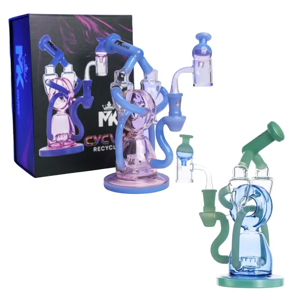 Need a new piece for your smoking collection? Well MK100 Glass has the perfect piece for you!! Our perfectly crafted recycler is uniquely designed to percolate every hit you take!! With a beautifully designed box this piece will be irresistable! A matching carb cap and MK100 quartz banger will also come with your stunning piece. Don't miss out on a one of a kind piece of glass.