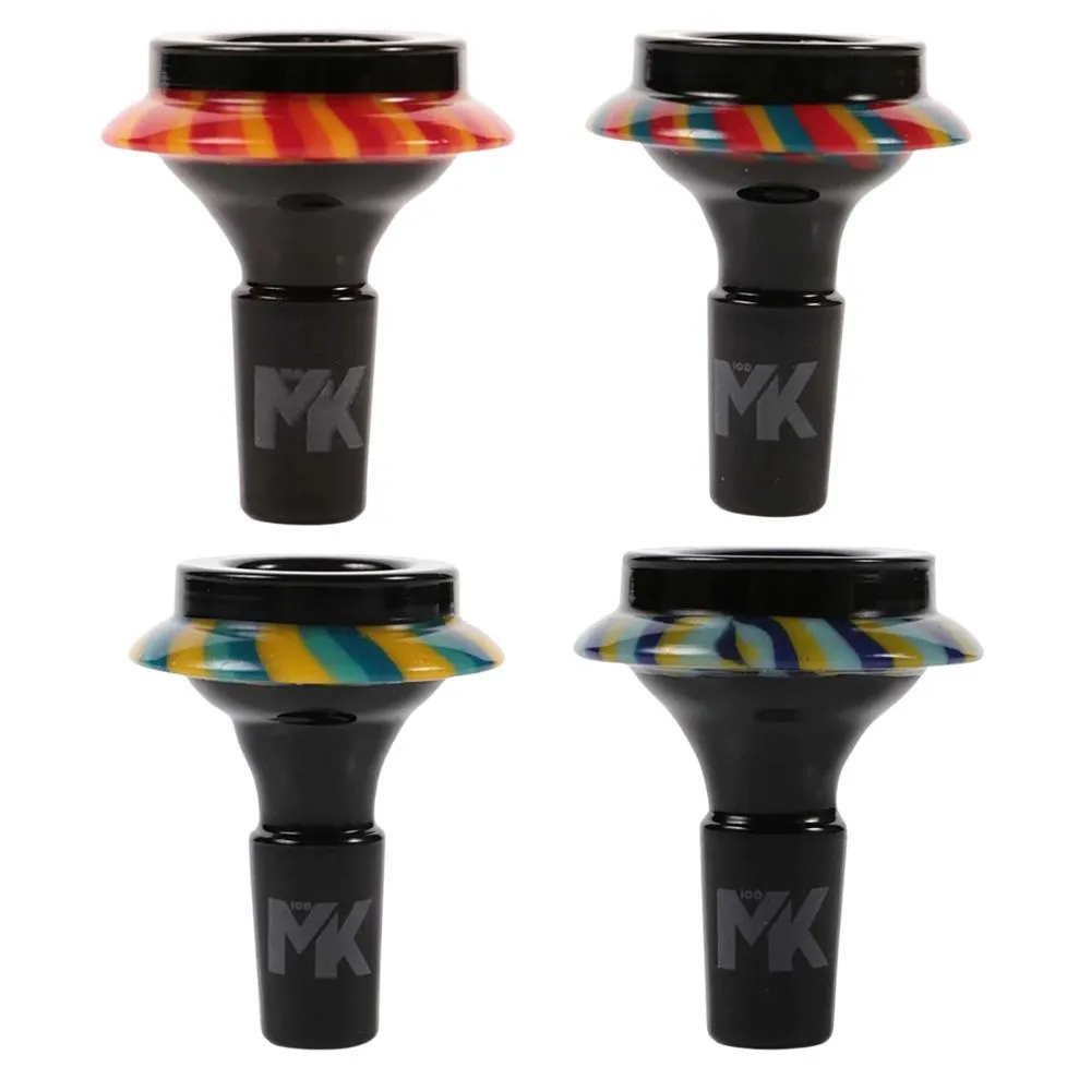 Soar high with these beautiful MK100 UFO Bowls. The colorful stripped bowl comes with a screen perfect for cartching those big chucnks, and giving you the ultimate smoking session. Avalible in 4 differnt colors these bowls are guranteed to look amazing on any water pipe you choose. Read more...
